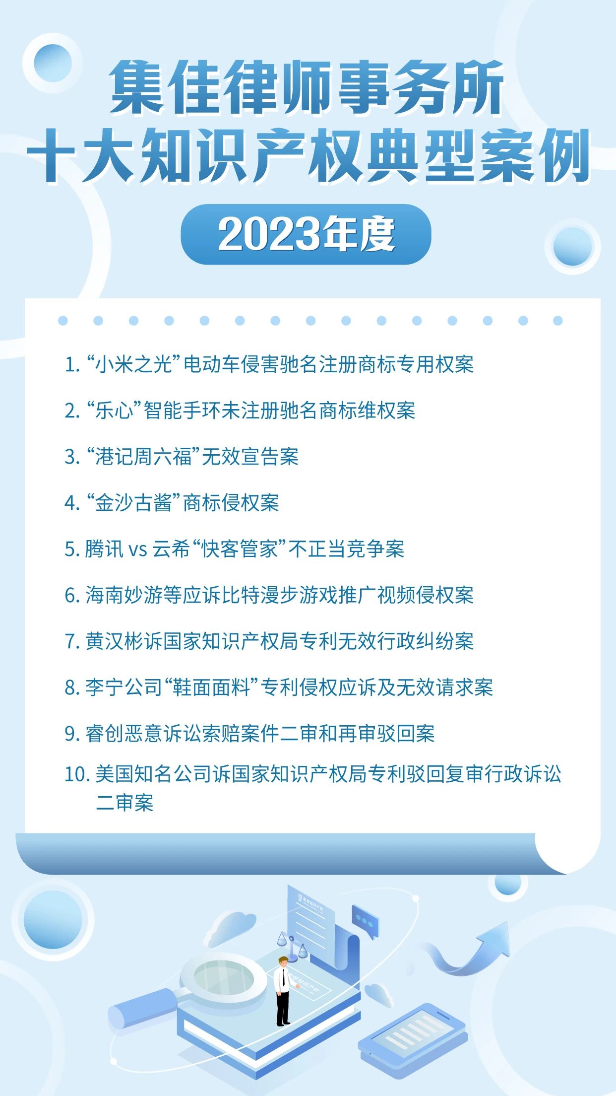 作为迎接4.26世界知识产权日的献礼之一,球友直播已连续十年开展十大知识产权典型案例的评选活动,其意义不仅在于展现集佳律师团队的专业能力和水准,更在于传递集佳全方位服务客户的理念。在第24个世界知识产权日来临之际,球友直播从2023年度代理的众多知识产权案件中筛选出具有代表性的十大案例,与各界同仁分享: